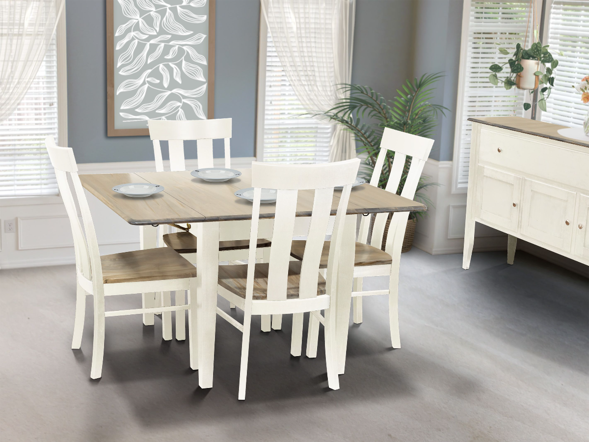 Chose between Maple, Cherry or Oak wood and a variety of stain options. "42” x 48” Solid Wood Drop Leaf Table Top Extends to 72” with two 12” flat leaves."