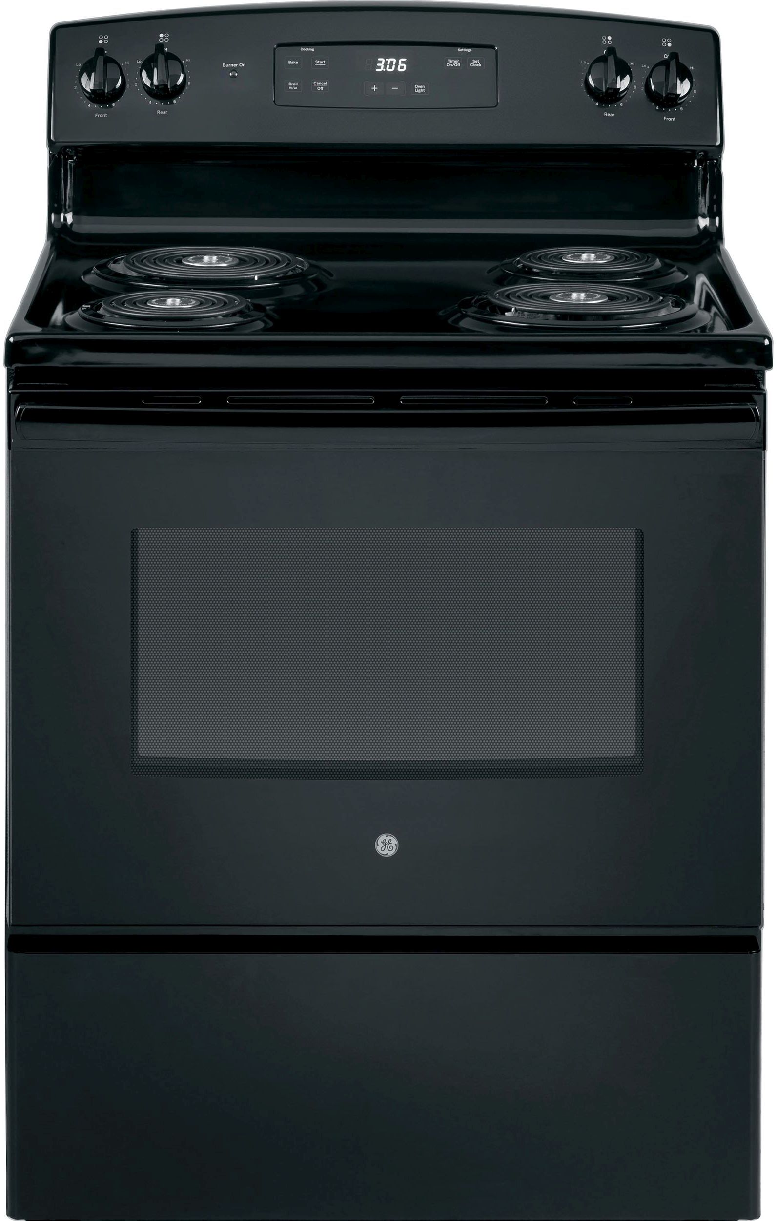 GE® 30" Black Free Standing Electric Range with 5.0 Cu. Ft. total capacity, sensi-temperature technology, and dual element bakeRead More
