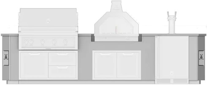 12-foot Outdoor Living Suite with Campania Pizza Oven™ consists of multiple cutouts (appliances sold separately) in a suite to accommodate: 42″ Hestan Built-in Grill, 42″ Hestan Access Door or Drawer/Door Cabinet, 33" Campania Pizza Oven™, 36″ Hestan Storage Drawer, 24″ Hestan Beer Dispenser.