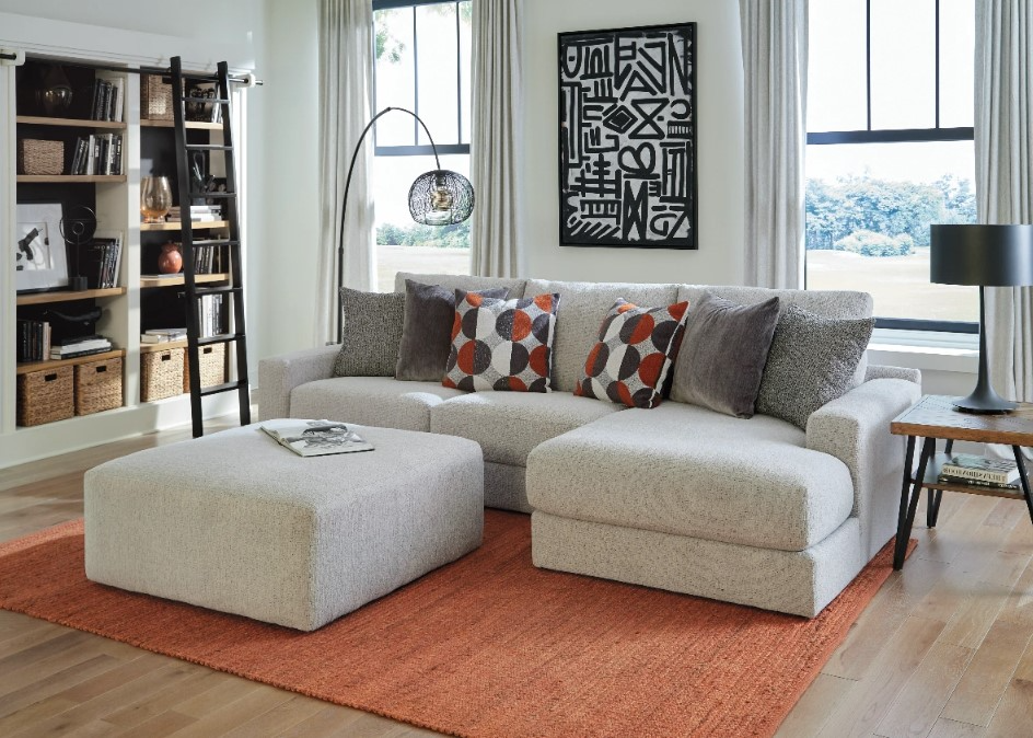 This sectional combines modern elegance with cozy comfort. Upholstered in a soft oyster-toned fabric, this sectional features a spacious chaise for ultimate relaxation. Its sleek design and neutral color make it a stylish and versatile addition to any living space.Read More
