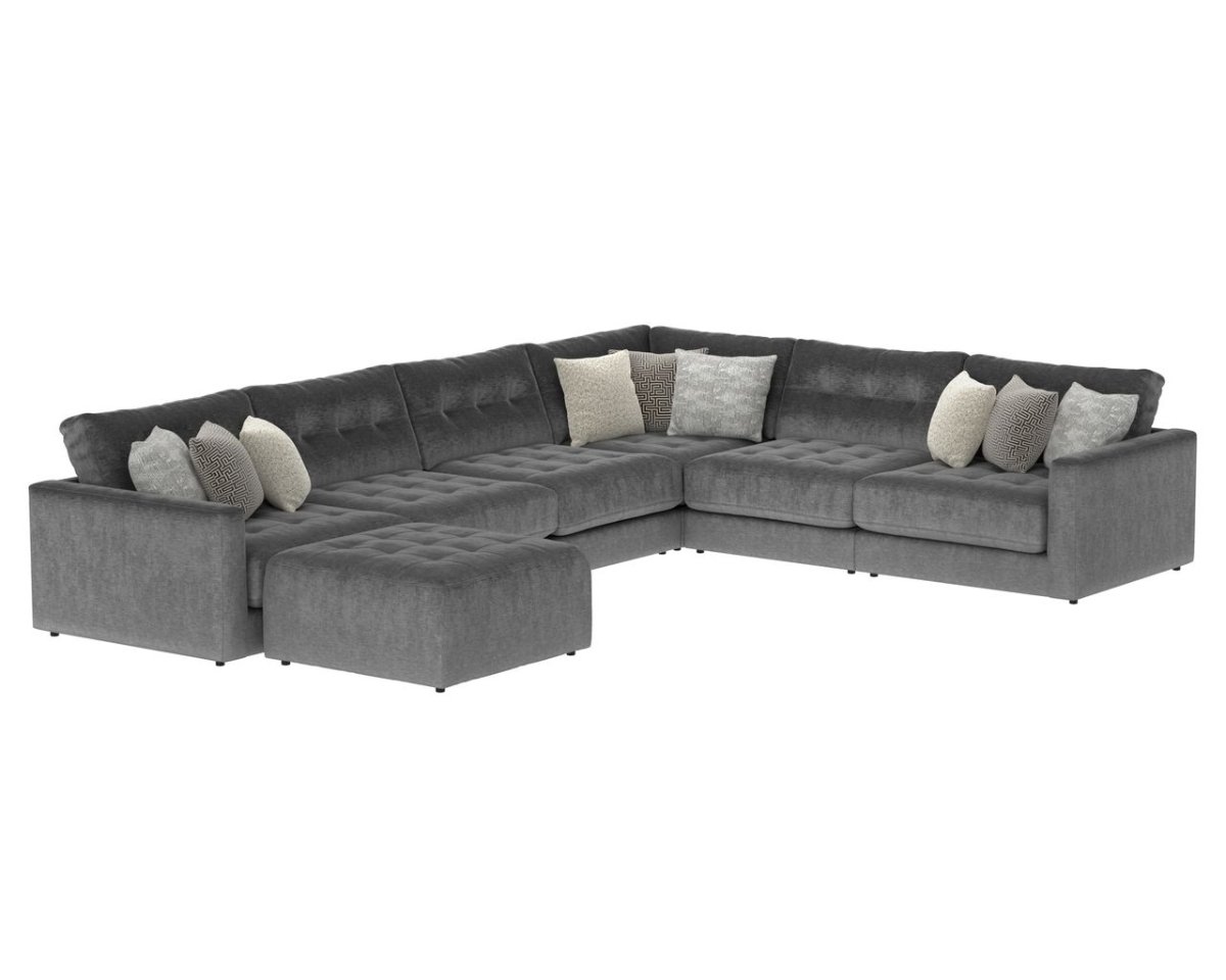 6pc includes left arm chair, right arm chair, corner seat and 3 armless chairs
