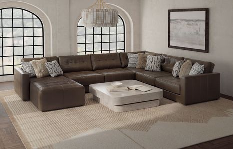 6pc includes left arm chair, right arm chair, corner seat and 3 armless chairs