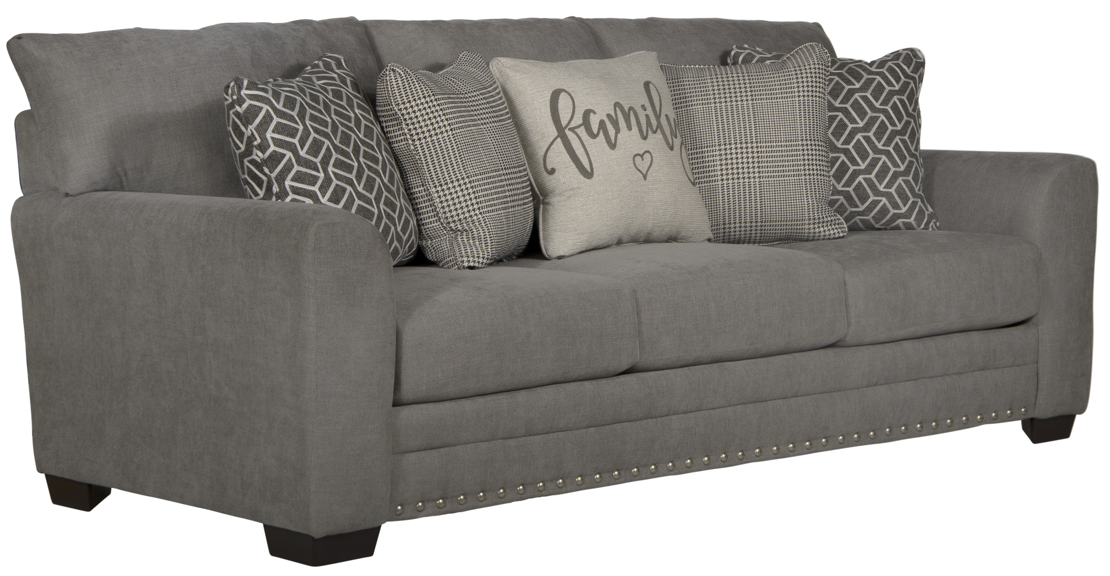 Includes correlating accent pillows and decorative nailhead accent trim