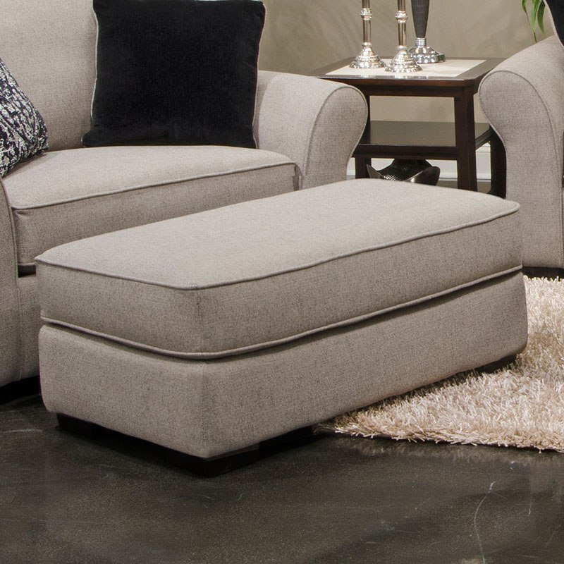 The Maddox fossil-colored ottoman provides high comfort and subtle wooden pyramid legs that enhance durability and good looks.