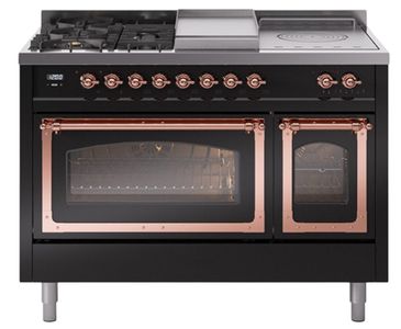 Introducing the new Nostalgie II 48" dual fuel range, a classic addition with a touch of innovation to any kitchen. This range feature sealed burners equipped with total black brass burner that has a non-stick nanotechnological coating, heavy cast iron grates.Read More