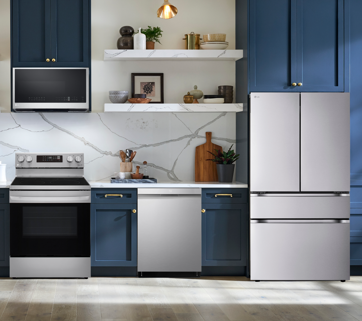 LG 4-Piece Kitchen Package with a 29.6 Cu. Ft. Capacity 4-Door French Door Refrigerator with Full-Convert™ Drawer & Internal Water Dispenser
