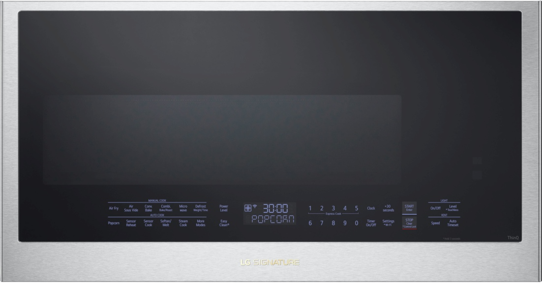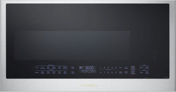 LG SIGNATURE over-the-range convection microwave fits perfectly in a modern aesthetic. With remarkable speed and versatility, you can bake, roast and now even Air Fry for family-focused convenience. Spacious 1.7 cu ft interior capacity lets you cook more at the high power of 300 CFM with 2-speed ventilation for high-performance over your range. It's power, speed and function, wrapped in the modern design of LG SIGNATURE.Read More