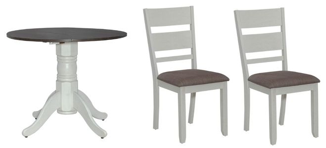 Includes drop table and 2 upholstered chair