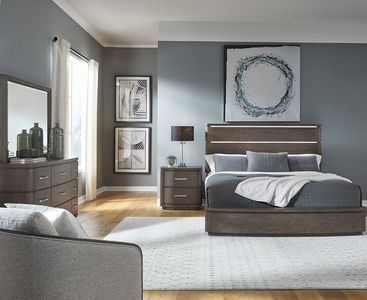Elevate your bedroom décor to new heights of sophistication and comfort with the cascade falls king panel bed, dresser, mirror, and nightstand. Crafted with excellence using rubberwood solids and split heart white oak veneers, this set features a satin espresso finish.Read More