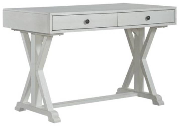 Feel at home while you work from home with the Lakeshore writing desk. Crafted with excellence using rubberwood solids and white oak veneers, this desk features a Wire-Brushed White finish. The desk has two full extension drawers accented with Dark Pewter knob hardware.Read More
