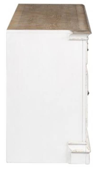 This European traditional styled entertainment center is sure to be the focal point of any living room. The 74" console features two wood framed glass doors flanked by antique mirror doors, with a decorative grid panel.Read More