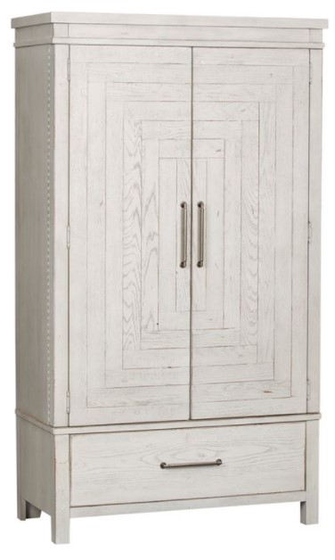 Accent your bedroom with the perfect farmhouse design, using this unique and stylish armoire. The all-over flea market white finish accompanied by heavy distressing sets this piece apart from the rest of the collections.Read More