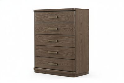 Five deep drawers with curved outside corners to match the design detail of the headboard and footboard. Burnished drawer handles also feature a curved detail and blend well with the wood finish.