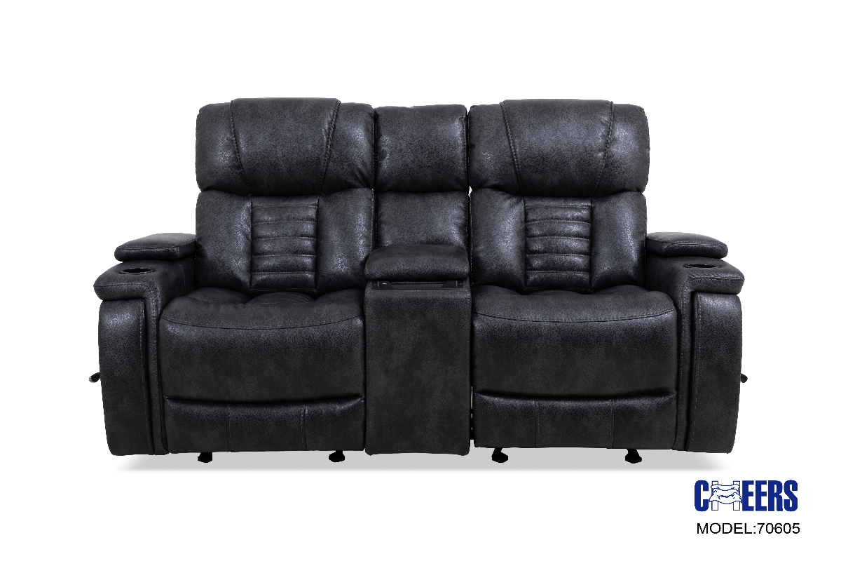 Manwah Charcoal Zero Gravity Power Reclining Console Loveseat