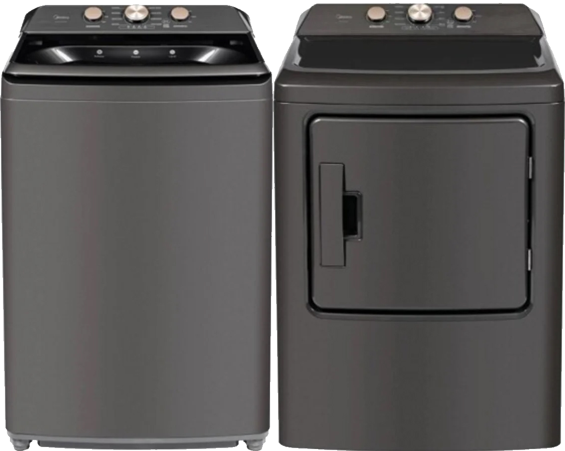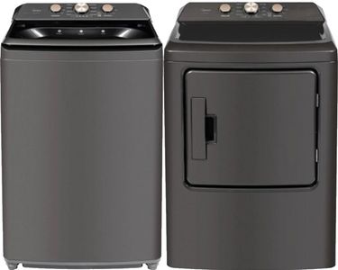 This metallic gray top-load washer from Midea offers a 4.1 cu. ft. capacity and features a Power Boost agitator for thorough cleaning. Its efficient cycles handle various fabrics, while the modern design and user-friendly controls make laundry faster and more convenient.