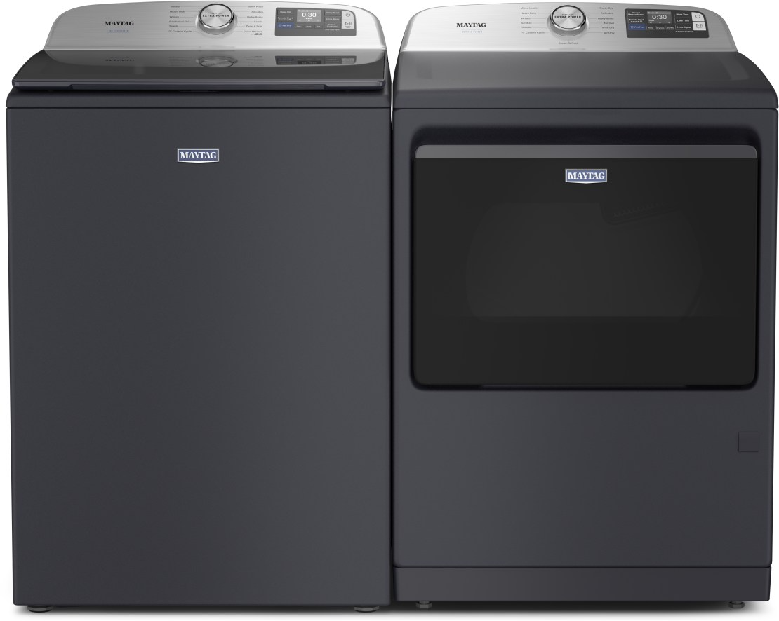 Get a clean you can see with the Maytag® pet pro washer that's built to trap and remove pet hair. Press the pet pro option to activate the built-in pet pro filter to visibly remove pet hair. Extra power boosts stain fighting on any wash cycle so you can walk away while stains wash away. The deep Fill option delivers more water when you want it with your choice of deeper water levels, while the built-in water faucet delivers a quick rinse or a long soak leaving clothes ready for the wash cycle. Plus, smart washer features help you stay in control and efficiently manage laundry from anywhere. Maytag™ app to remotely start or stop your appliance and get end of cycle notifications.