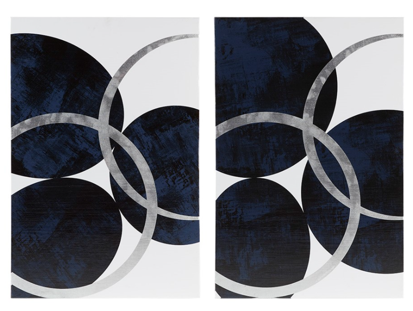 Make a statement in any room with our INK+IVY Celestial Orbit Navy. A striking abstract design of deep navy hues and silver metallic foiling stone shapes stand bold against a white background. The gel coating creates a glossy finish, while an MDF backing provides structure and support. Display this abstract piece in your living room or bedroom to add sleek and modern appeal to your decor.Read More