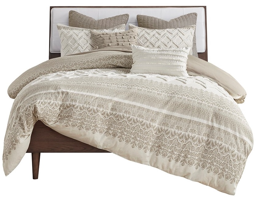 Transform you bedroom with the charming shabby chic allure of the INK+IVY Mila Cotton Printed Comforter Set with Tufted Chenille. The cotton comforter flaunts an updated taupe botanic print, on a natural white ground, with tufted white chenille, in a chevron design, to create a charming farmhouse look.Read More