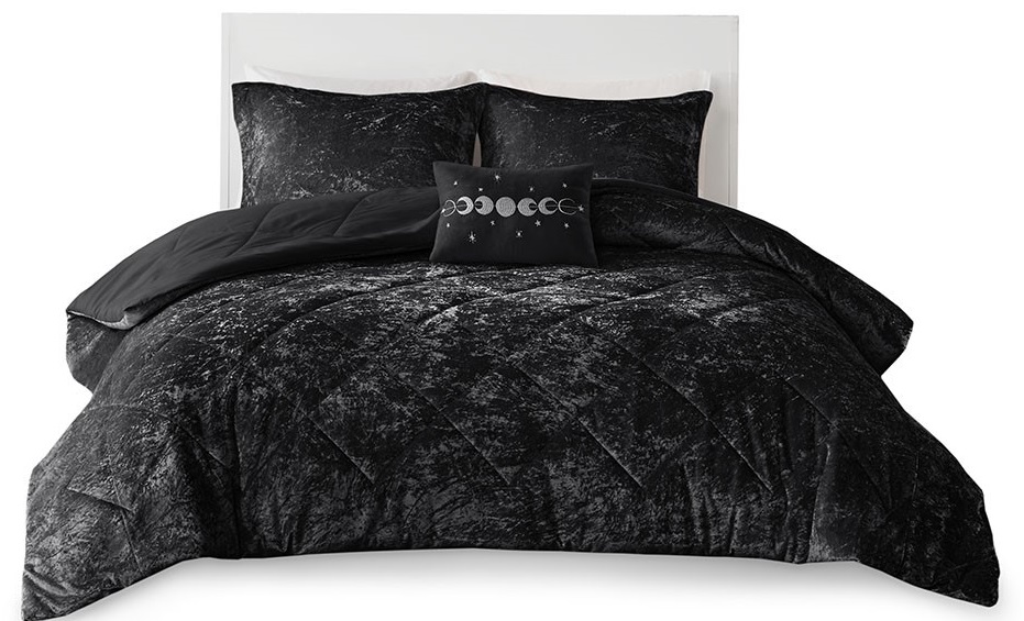 Create a luxuriously comfortable and lush bedroom space with the Intelligent Design Felicia Velvet Comforter Set. The crushed velvet, black comforter features a quilted diamond top that adds dimension to the glamorous look.Read More