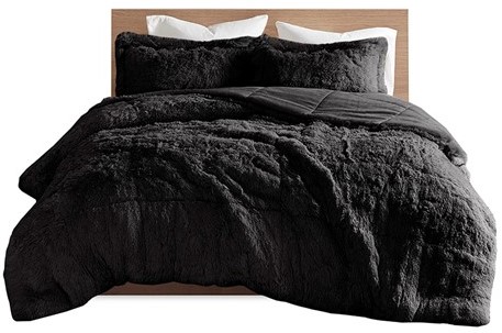 The Intelligent Design Malea Shaggy Long Fur Comforter Mini Set brings a soft contemporary update to your bedroom. The black comforter and shams (1 in Twin/TwinXL) feature stylish shaggy faux fur that creates a soft fluffy texture and modern look.Read More