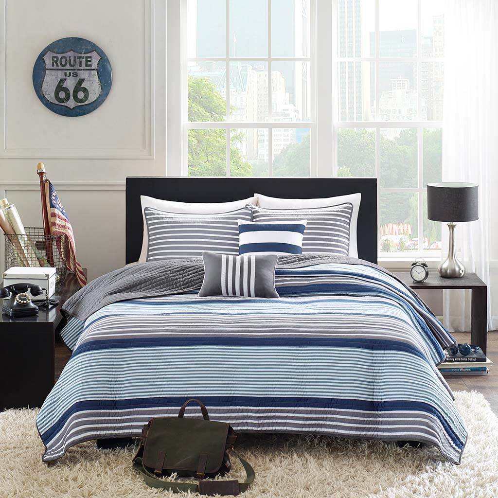 Give your bedroom a fresh new look with the Intelligent Design Paul Reversible Coverlet Set. This quilted coverlet features a modern striped print with wide and thin stripes on the face with the solid grey reverse to create a handsome look.Read More