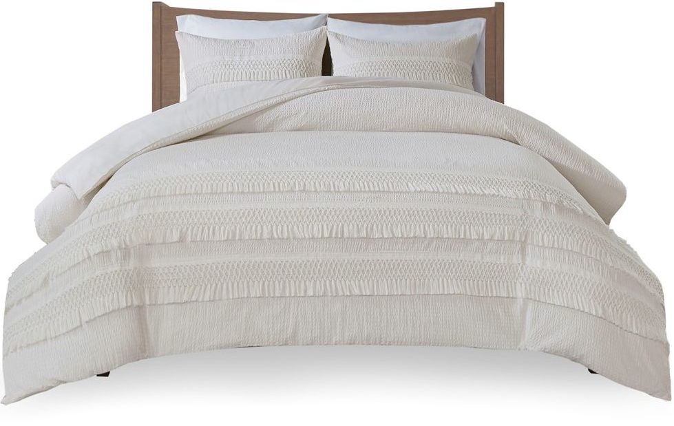 Restyle your bedroom with the shabby chic allure of the Madison Park Amaya 3 Piece Cotton Seersucker Duvet Cover Set. The ivory seersucker duvet cover is made from 100% cotton and features decorative tassel trims for a globally inspired look. Two matching shams mirror the design of the duvet cover, completing the cotton seersucker bedding set.Read More