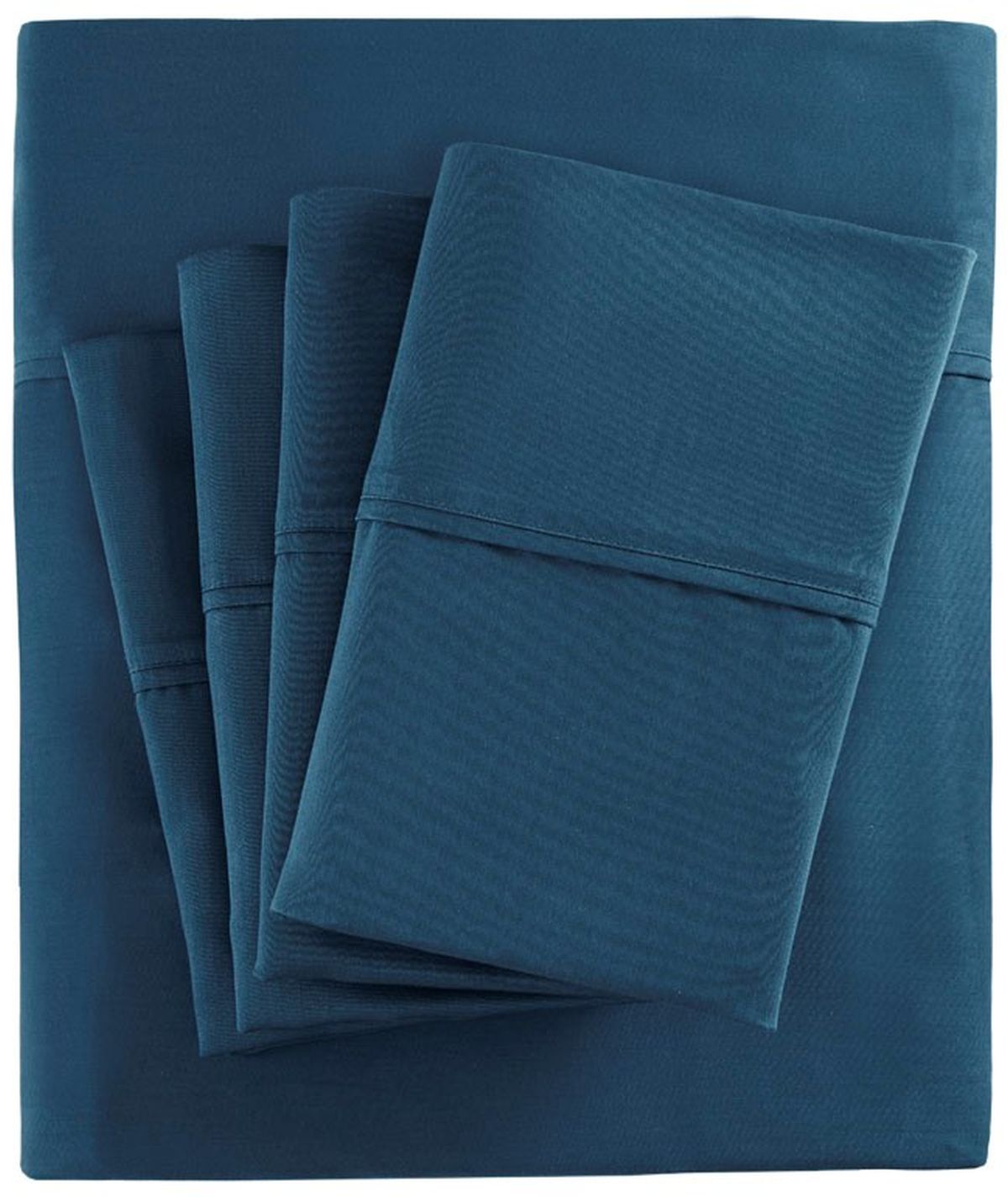 Madison Park introduces the 800 thread count cotton rich sateen sheet set. The sheets feature a durable cotton rich construction, resistance to color fastness and shrinkage. It is also wrinkle resistant and ready to set the bed right out of the dryer. The unique cross woven sateen construction allows you to experience the softness of pure cotton against your skin while you sleep. Set includes flat sheet, fitted sheet (2 fitted sheets for Split King size) and 4 pillowcases. Fitted sheet fits up to 17-inch pocket depth mattress. The durable cotton rich sheet set will be long lasting for many washes! Machine washable for easy care.