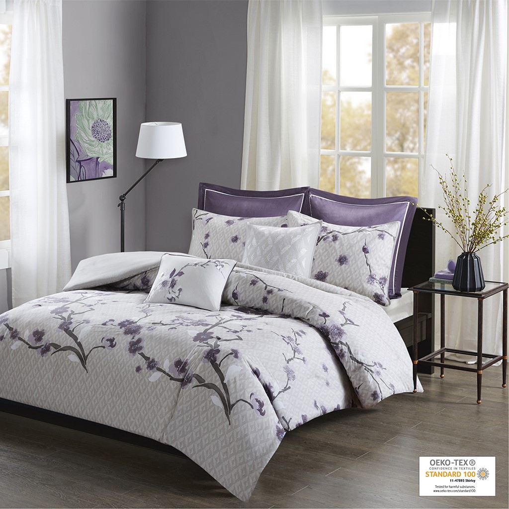 The Madison Park Holly 7 Piece Cotton Duvet Cover Set will add charm and elegance to your bedroom décor. A lovely floral print is showcased on the duvet cover and shams, for a graceful transitional look. The two Euro shams provide a splash of color, while two decorative pillows add the finishing touches. A button closure secures a comforter insert within the duvet cover and inside corner ties prevent it from shifting (insert is NOT included). This bedding set is also OEKO-TEX certified, meaning it does not contain any harmful substances or chemicals to ensure quality comfort and wellness.