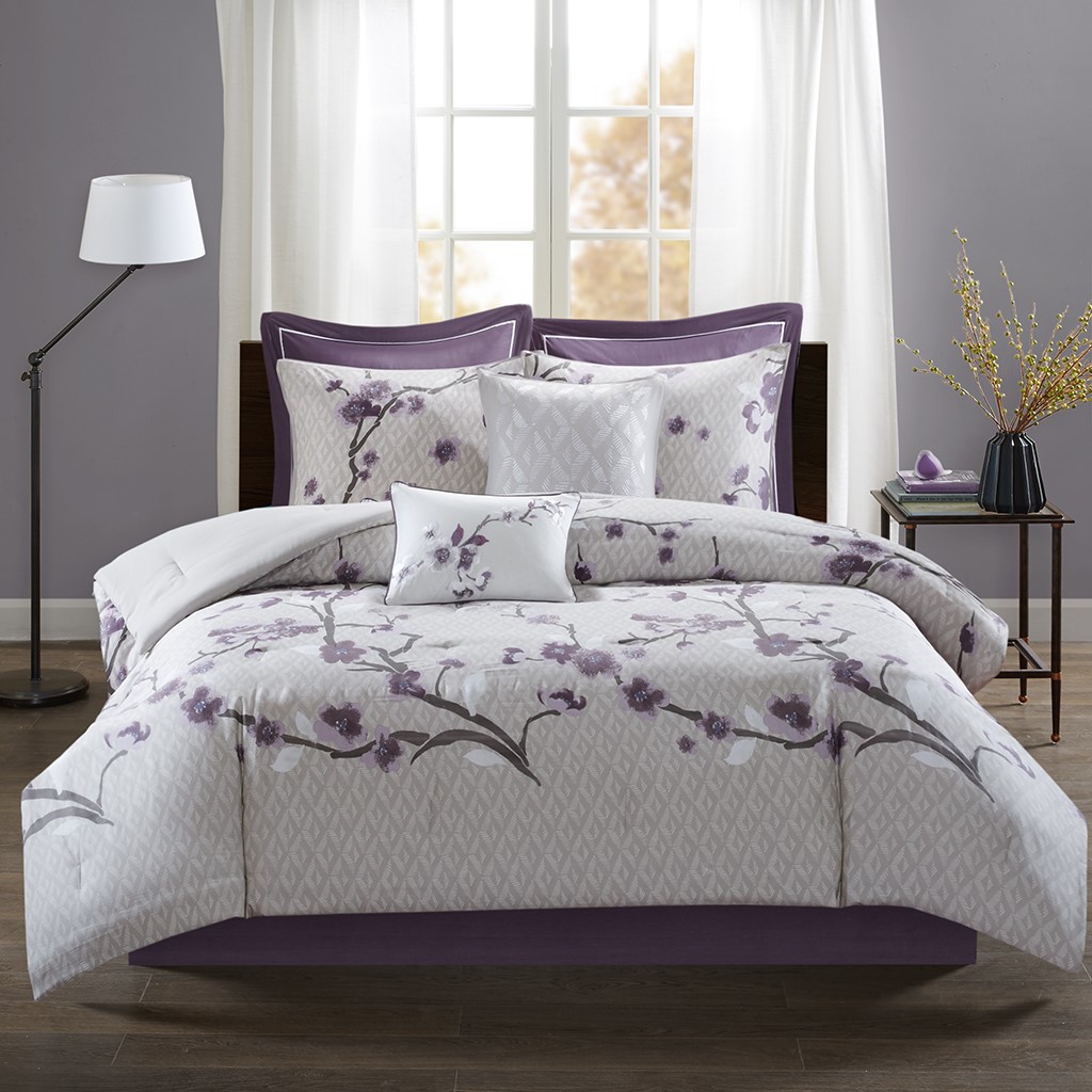 8 piece cotton sateen comforter set in printed floral design.