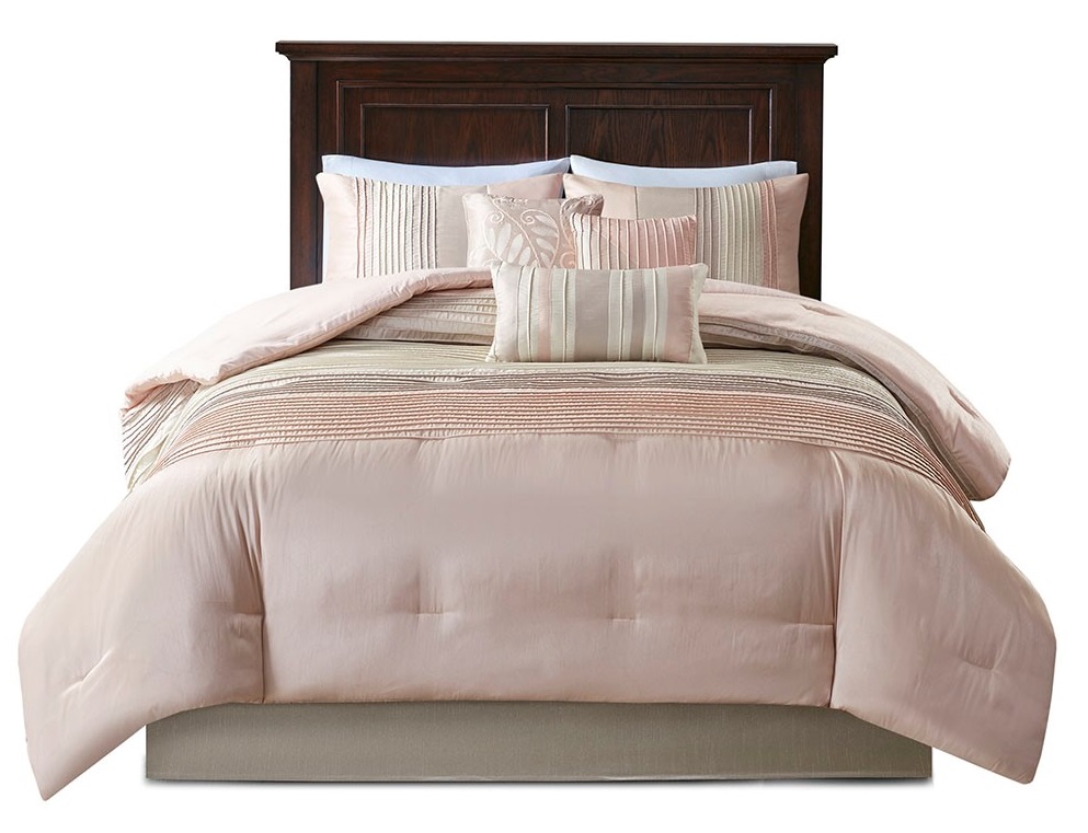 The Madison Park Amherst 7 Piece Comforter Set offers a beautiful update to your bedroom décor. The polyester faux silk comforter and shams features a pieced and pintucked design in blush, ivory, and taupe hues for a chic contemporary look.Read More