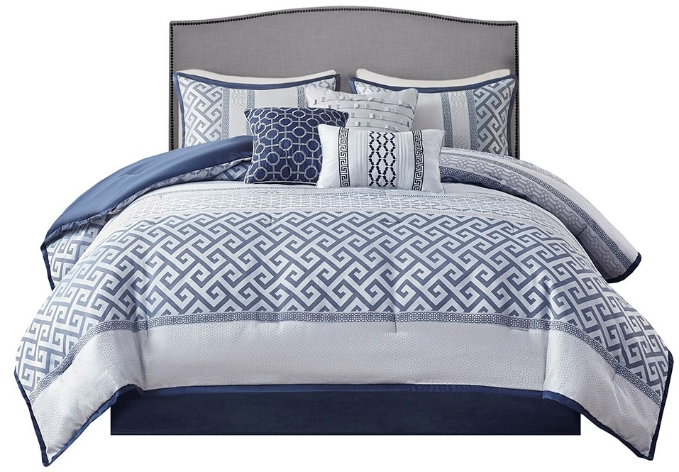 The Madison Park Bennett 7 Piece Jacquard Comforter Set provides an elegant and luxurious update for your bedroom. This jacquard comforter features a navy and grey striped design with several geometric prints to create an updated traditional look.Read More