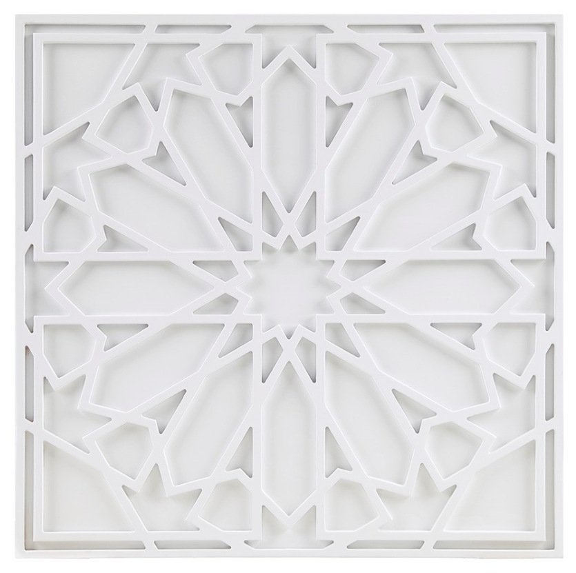 Square framed wood carving that is chic and contemporary.