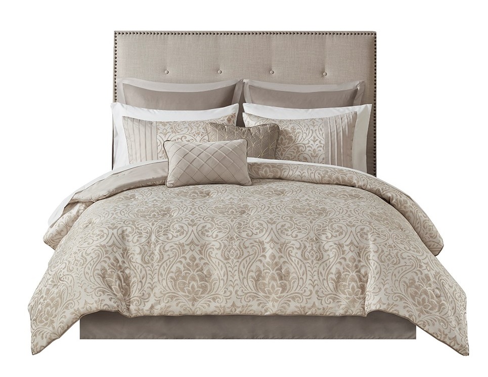 Luxurious and traditional style damask jacquard 12 piece complete bed set.