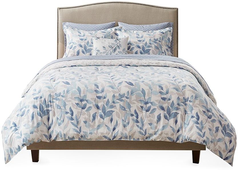 The Madison Park Essentials Sophia Reversible Complete Bedding Set offers a beautiful update for your entire bed. A botanical print, in soft blue hues, adorns the face and the reverse of the comforter, creating two distinct and stylish looks. The matching reversible shams coordinate perfectly with the comforter, while an oblong decorative pillow adds the finishing touch. Also included is a patterned blue sheet set that completes this reversible bedding set. Bringing the best in health and wellness, this bedding set features an anti-microbial treatment - that is safe and non-harmful to humans and the environment - to prevent odors caused by bacteria, reduces the risk of bacteria growth, enhances hygiene, and keeps fabric feeling fresher, longer. This bedding set is also OEKO-TEX certified, meaning it does not contain any harmful substances or chemicals, ensuring quality comfort and wellness.