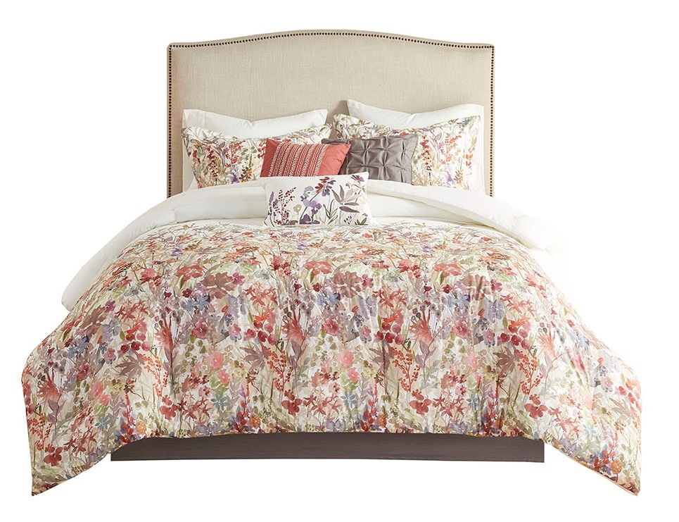 The Madison Park Mariana 7 Piece Cotton Printed Comforter Set brings a touch of beauty to your bedroom decor. This cotton comforter features a watercolor floral print that runs from the middle of the bed to the foot, for a beautiful transitional look.Read More