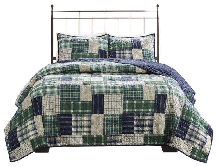 Rich in color, the Madison Park Timber 3 Piece Reversible Printed Coverlet Set offers a lodge style update for your bedroom. This reversible rustic coverlet features a patchwork print, in green and navy hues, for a cabin-inspired look.Read More
