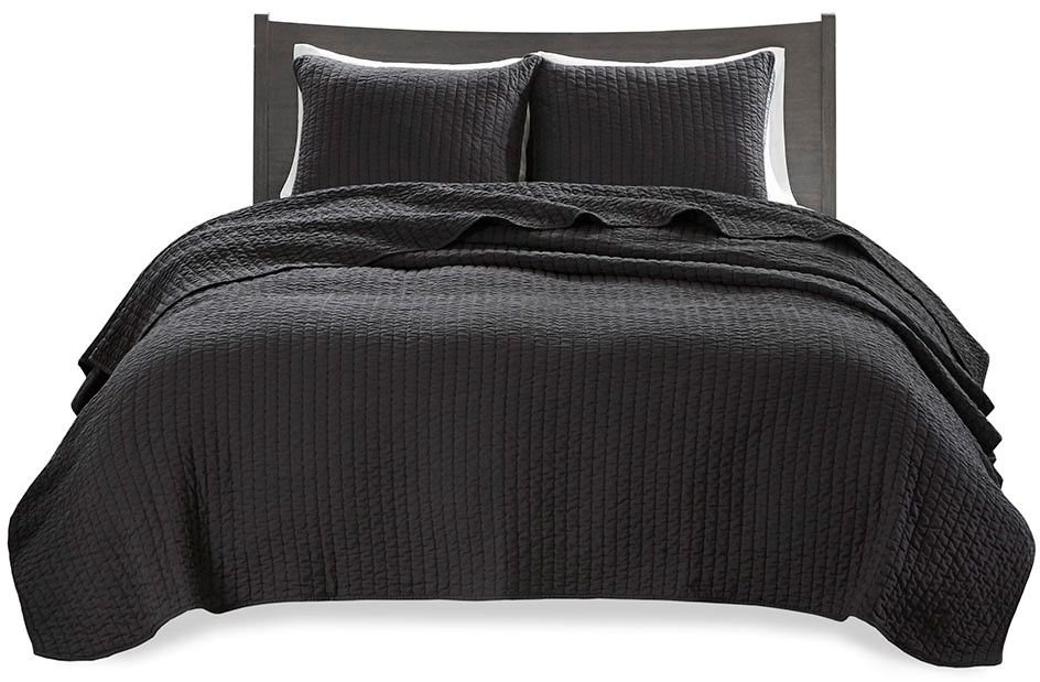 The Madison Park Keaton Reversible Coverlet Set provides a simple and casual update to your bed. This solid black reversible coverlet features pick stitch channel quilting to keep the cotton-rich filling secure and create a cozy farmhouse look.Read More