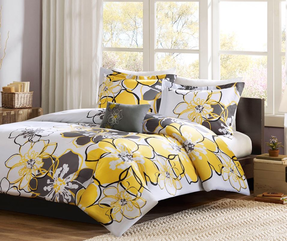For a fresh look, the Allison Comforter Set can brighten up your room with its vibrant yellow and grey shades. The comforter and shams (1 for Twin/Twin XL) feature a printed, overscaled floral motif that is set to one side on a bright white backdrop.Read More