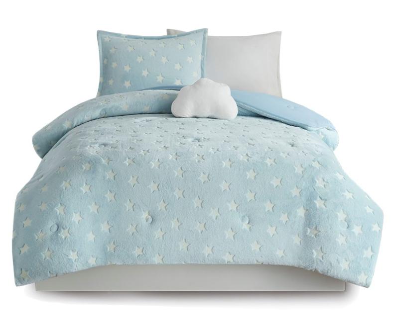 Sleep under the stars with the Mi Zone Kids Quinny Glow in the Dark Plush Comforter Set. The plush aqua comforter and shams (1 in twin or twin xl) feature glow-in-the-dark stars to create a whimsical look that bathes your kid’s room in starlight.Read More