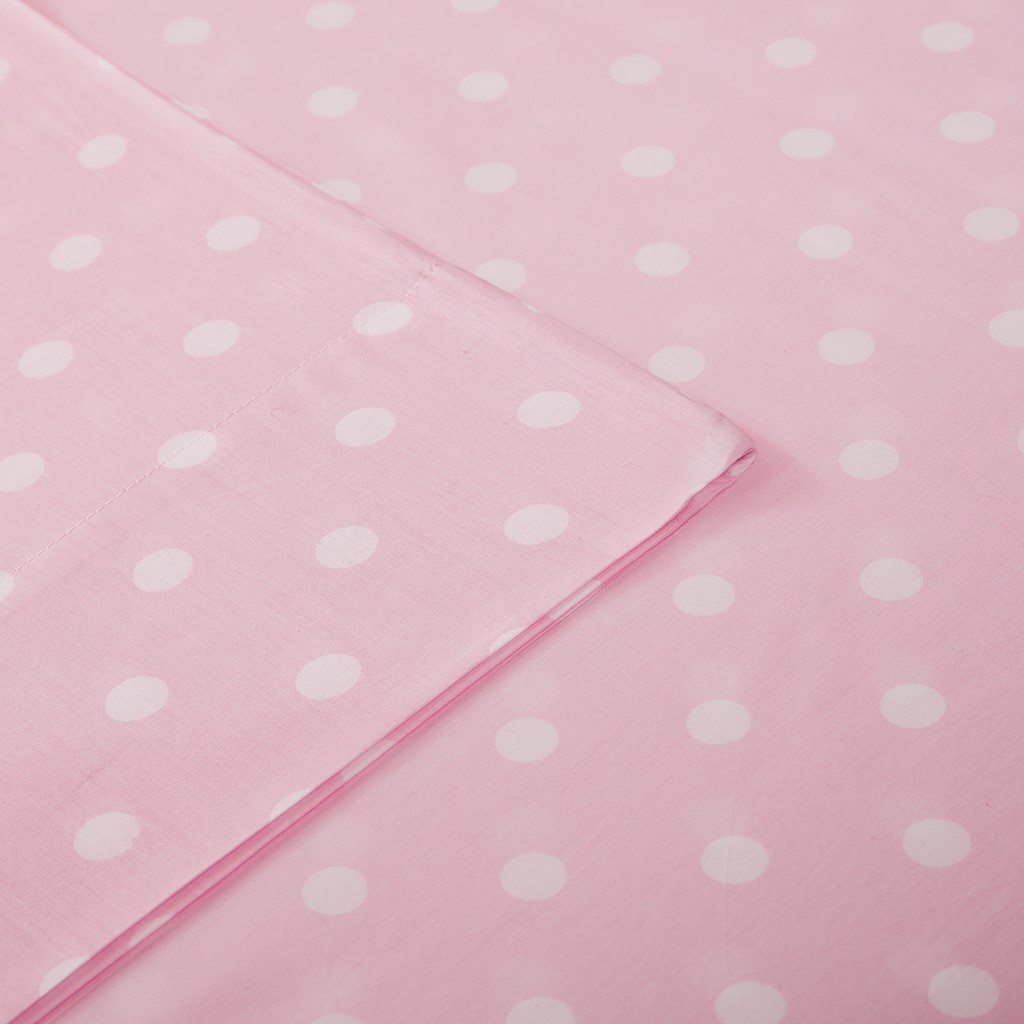 Brighten up your room with the Mi Zone polka dot sheet set. The bold colors and fun print will liven up any room. Made from 100% cotton percale, this sheet set will last wash after wash. The fitted sheet will fit up to a 16" mattress.