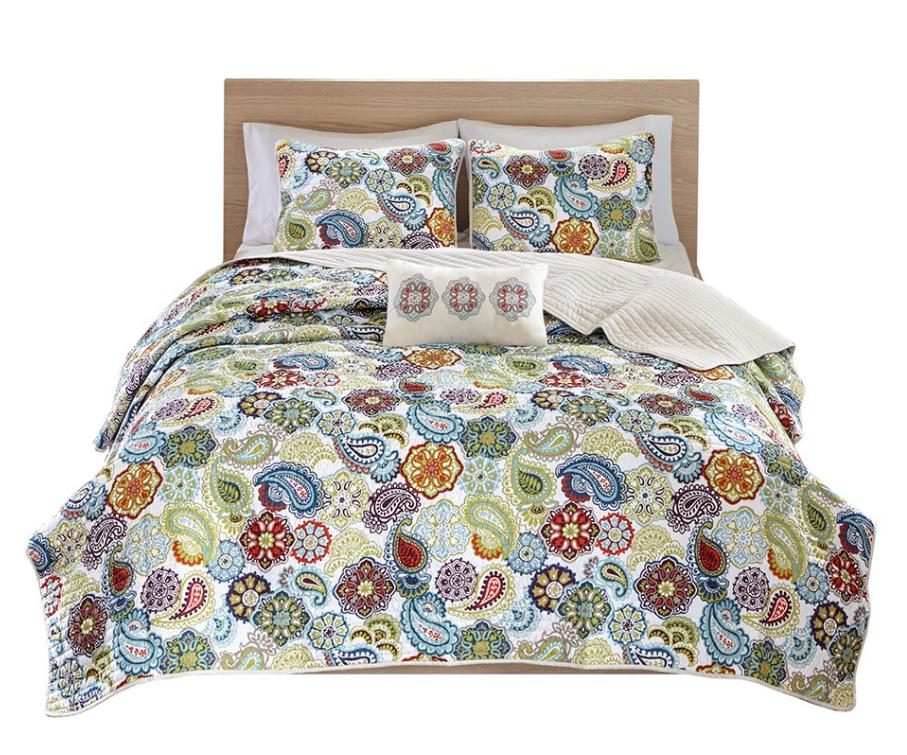 Bold and bright, the Mi Zone Tamil Reversible Coverlet Set can revitalize the look of your bedroom. An updated paisley pattern is vibrantly showcased with an eclectic mix of floral prints and medallions while matching sham(s) harmonizing with the colorful pattern seen on top of the bed.Read More
