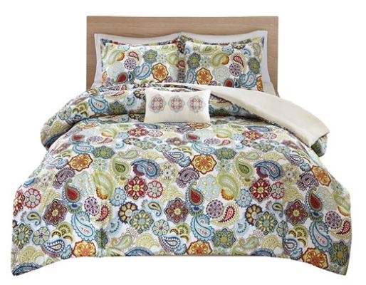 Bold and colorful paisley printed comforter set.