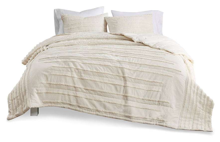 The Urban Habitat Mercer 3 Piece Cotton Chenille Coverlet Set offers a cozy contemporary update to your bedroom decor. This cotton coverlet features vertical chenille stripes along the sides and horizontal chenille stripes that run down the center to create a modern, textural design.Read More
