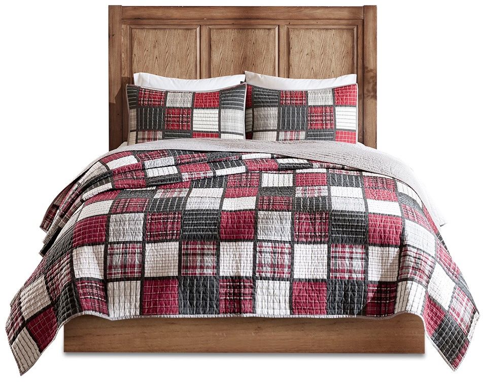 The Woolrich Tulsa Cotton Quilt Mini Set offers a cozy lodge-style update for your bedroom. A printed plaid pattern in red and grey hues is showcased on the cotton quilt coverlet and matching shams for a charming farmhouse look. Prewashed with soft cotton filling, this 100% cotton quilt set transforms your bedroom into a comfortable cabin retreat and is machine washable for easy care.