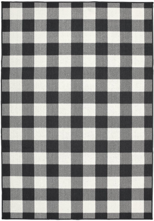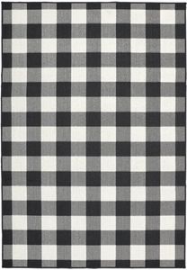 Marina is an elegant new introduction for indoor or outdoor use and features a 100% polypropylene looped yarn made in Egypt. It features a classic neutral palette using high contrast colors like black, ivory, deep navy, sand and cool gray. The collection includes casual but sophisticated patterns like updated geometrics and simplified traditionals that all feel fresh but timeless.