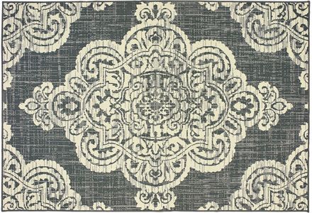 Marina is an elegant new introduction for indoor or outdoor use and features a 100% polypropylene looped yarn made in Egypt. It features a classic neutral palette using high contrast colors like black, ivory, deep navy, sand and cool gray. The collection includes casual but sophisticated patterns like updated geometrics and simplified traditionals that all feel fresh but timeless