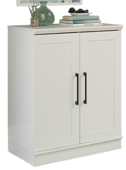 This floor storage cabinet is stackable up to two high, for vertical storage options, or line up multiple cabinets side-by-side for storage in the office, craft room, or utility room. With adjustable base levelers, this stackable storage cabinet can be easily stabilized on any surface, while the sleek White finish adds a touch of modern elegance to any space, from the bathroom to the dining room. The carefully crafted design seamlessly blends functionality and style, providing a practical storage solution while enhancing the aesthetic appeal of any room. Say farewell to clutter and welcome an organized and stylish living environment with this floor cabinet with doors from the HomePlus collection.