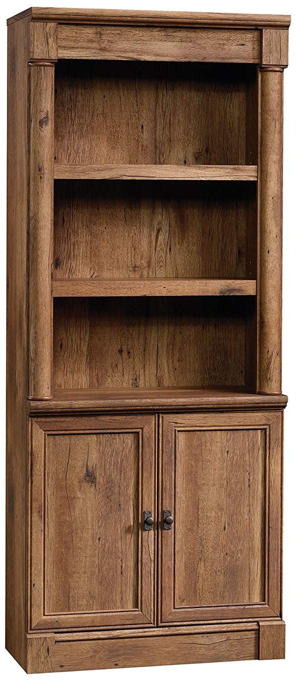Add timeless beauty and elegant style to your home décor with this library with doors from the Palladia collection. It features two spacious adjustable shelves that are perfect for storing and displaying anything from your collection of books, storage bins, and work binders to photos of your family, decorative plants, and knick-knacks. Behind the framed double doors is an additional hidden storage area that contains an adjustable shelf so you can stow away other miscellaneous around home essentials – like all the stuff you don’t want your guests to see. It also features cord access through the enclosed back panel so you can keep all your cords and wires neat and out of sight. Its charming style and convenient functionality make this library a perfect fit for your living room, office or even in the bedroom. Finished in Vintage Oak and accented with black hardware, this stunning library gives your home the fresh new look you’ve been waiting for.