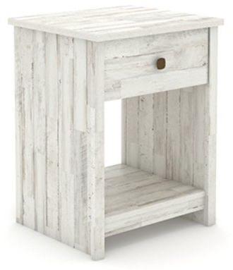 For the perfect place to set your glass of water at bedtime, look no further than the country chic design of the River Ranch™ nightstand. Use the spacious top surface of this nightstand with open storage to set your nighttime tea, your alarm clock, reading glasses, and your phone. Charge your cellular device overnight with ease because this bedside table with drawer accommodates optional Hidden Wireless Qi Compatible Charger by Eggtronics 425905 (sold separately – visit sauder.com for more information). Finished on all sides for versatile placement, this farmhouse nightstand will look polished from every angle. Assembly is a breeze with the T-slot drawer system and slide-on moldings. Finished in a White Plank®, this nightstand finally fives you somewhere, other than the floor, to put your bedtime necessities.