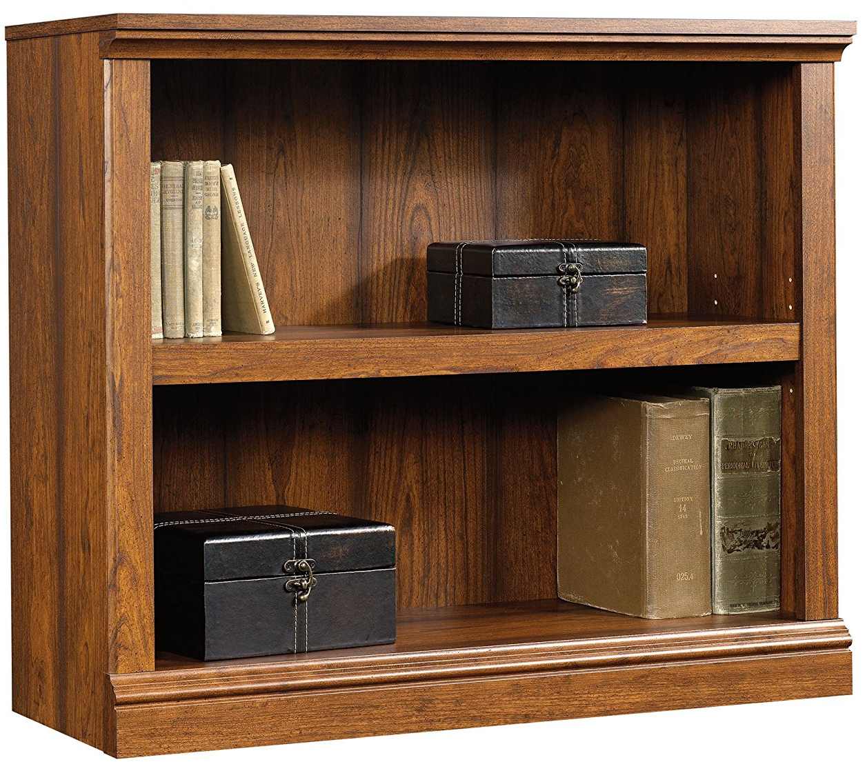 There is no such thing as too much storage space. Add a little extra storage to any room in your home with this 2-shelf bookcase from the Sauder Select collection. This short bookcase features two large shelves that provide you with all the room you need to store and display a variety of different things like your collection of novels, work binders, your array of knick-knacks and organizing bins too. It includes one adjustable shelf that has the ability to move to different heights to create flexible storage options for items of all shapes and sizes. Its spacious top surface provides you with an additional space to display your favorite decorations like an accent lamp, picture frames and decorative plants. You can find a place for all your things! Its simplistic design and charming style make this bookshelf a perfect fit for any room in your home – the living room, your office, down the hallway or even in your bedroom. Finished in Washington Cherry, this versatile bookcase will have you feeling organized in no time.